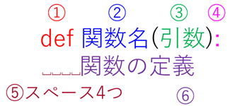defで関数を定義する場合、次のように作ります。