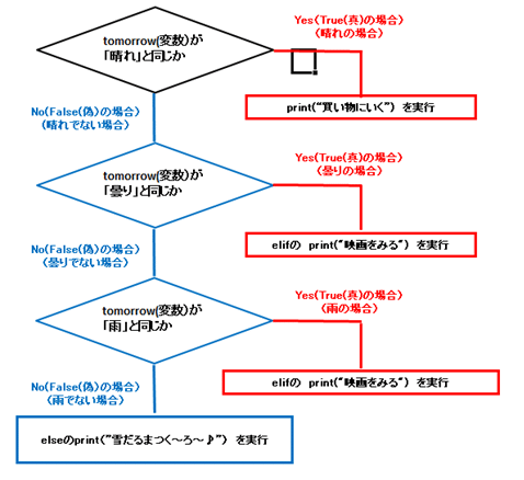 3)elif文がFalseを返す限り、上から順番にelif文が評価されていきます。